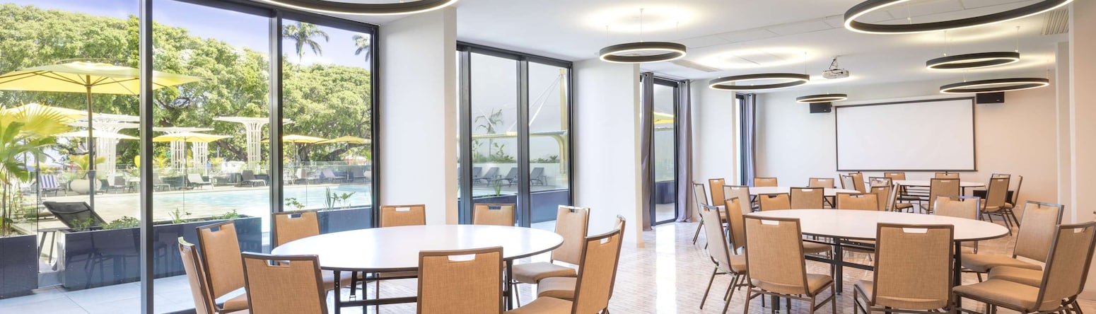 Host your work and social events in our stylish venues including meeting rooms with flexible setups and brand-new audiovisual equipment. Radisson Hotel Saint-Denis, La Réunion offers five meeting rooms, and each of our unique spaces provides natural light with large windows. Our two spacious ballrooms, with views of either the Indian Ocean or our outdoor pool area, are ideal for conferences or celebrations and can accommodate up to 250 attendees. All our meeting and event venues offer customized catering services to keep everyone energized. Your events can be tailor-made by our team, crafting positive experiences full of memorable moments to surprise and delight every attendee.Taxi trips between the airport and our hotel cost around EUR 35-40.