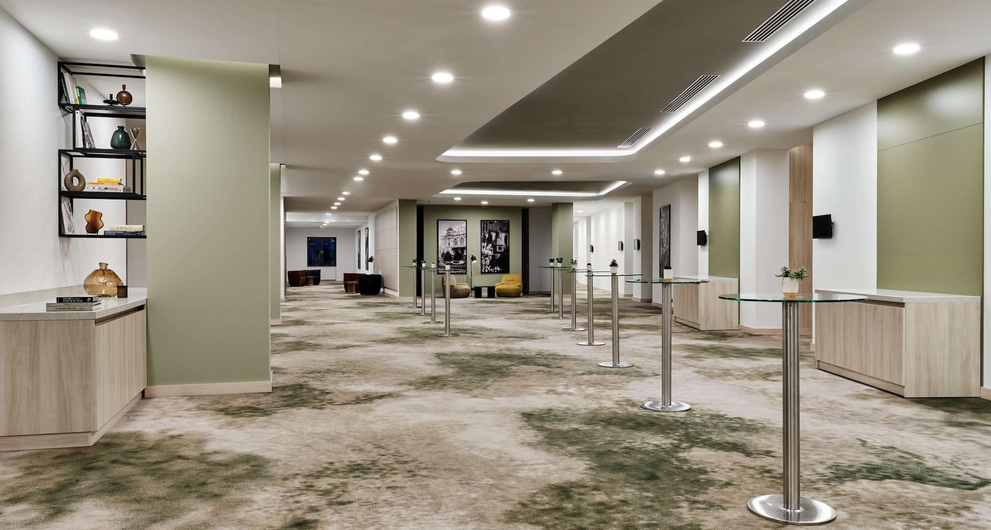 تتميز مساحات الاجتماعات الخمس المبتكرة لدينا بالأثاث والجدران المنزلقة التي يمكن تخصيصها لاستيعاب مجموعات كبيرة أو صغيرة والعديد من أنماط الاجتماعات، بما في ذلك نمط الجلوس في الفصل الدراسي وقاعات الاجتماعات ونمط الجلوس على شكل حرف U. يرحب ضوء النهار الطبيعي وإطلالات المدينة بالحضور، وتعمل خدمات تقديم الطعام على تبسيط وجبات الغداء والاستراحات لأجندات العمل. يوفر البهو الأنيق وقاعة الحفلات مكانًا متطورًا لإقامة الحفلات الرسمية وحفلات الزفاف.