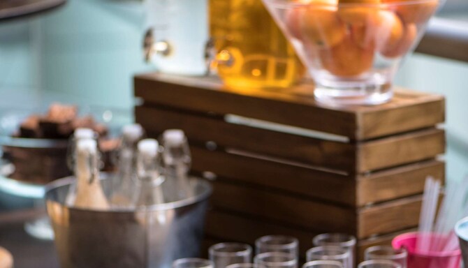 تتميز محطة القهوة لدينا بالمشروبات الطازجة ومجموعة متنوعة من أنواع الشاي الفاخر. لأولئك الذين يبحثون عن شيء أكثر انتعاشًا، لدينا مجموعة مختارة من المشروبات الباردة بما في ذلك المياه المعدنية والعصائر المنعشة والمياه المعطرة لتكمل تذوقك.