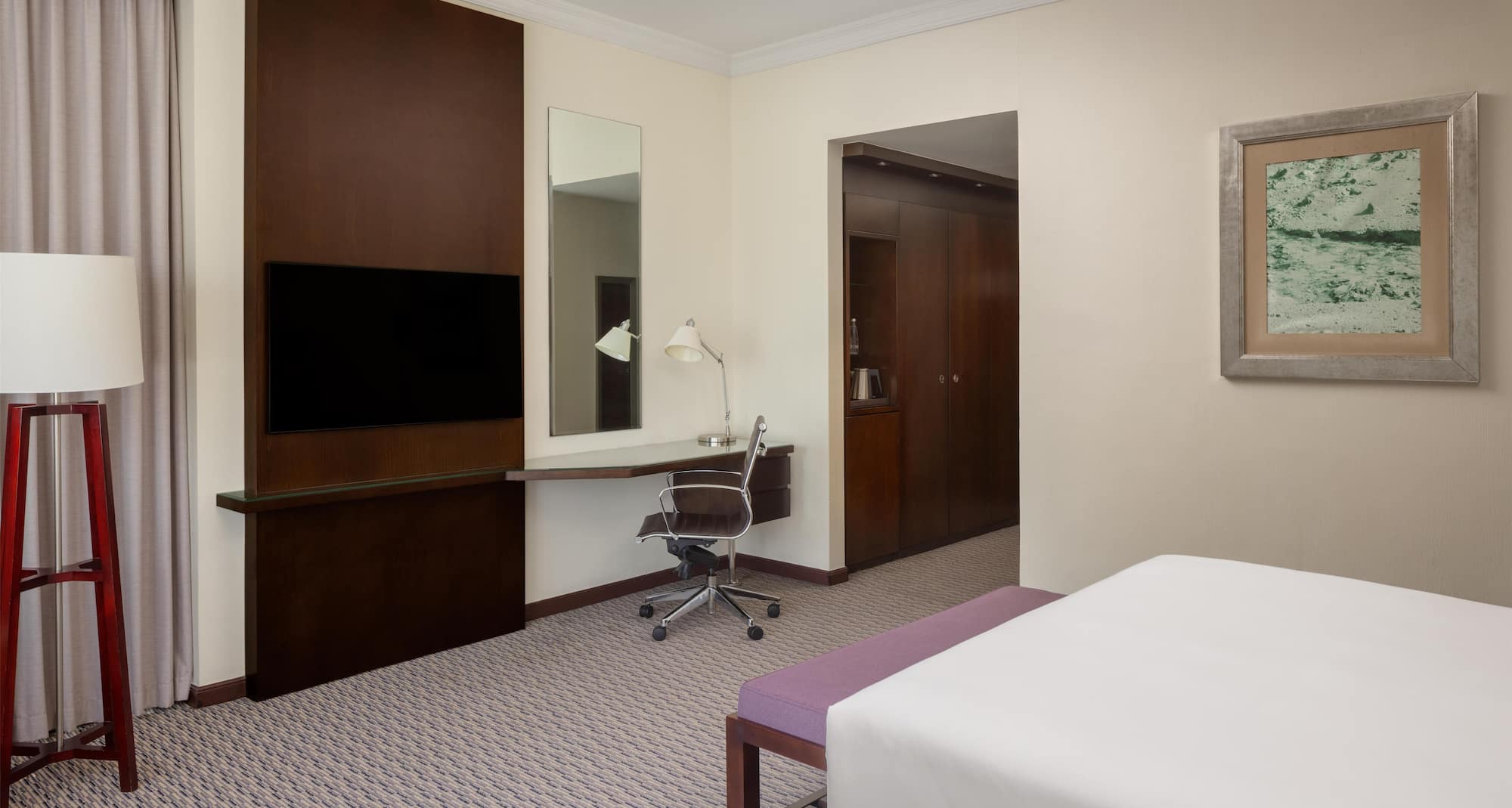 تتميز هذه الغرف الفسيحة والمشرقة بتوازنها بين الراحة والعملية، مما يجعلها مناسبة للمسافرين بغرض العمل والترفيه على حد سواء. استمتع بأجواء هادئة وراقية، مع أثاث عصري ووسائل راحة مدروسة في الغرفة.