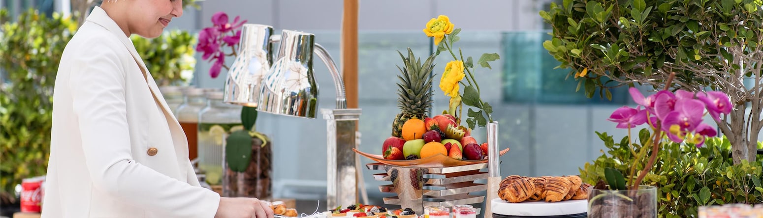استكشف خيارات تقديم الطعام في الفيلات لدينا، وخدمات تقديم الطعام للشركات، وعروض الفعاليات الكبيرة اليوم. وسيساعدك فريقنا أيضًا في التعامل مع أي حساسية أو متطلبات غذائية، وسيقدم لك معلومات مفصلة عن جميع المكونات.
