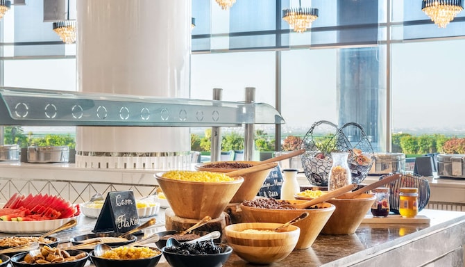 ابدأ يومك مع بوفيه إفطار شهي وتذوق وجبات العشاء المميزة لدينا والمستوحاة من جميع أنحاء العالم. يُقدّم المطعم الذي يفتح أبوابه لاستقبال الضيوف طوال اليوم الطعام مع بوفيهات الإفطار والعشاء، بالإضافة إلى قائمة غداء انتقائية مغرية.