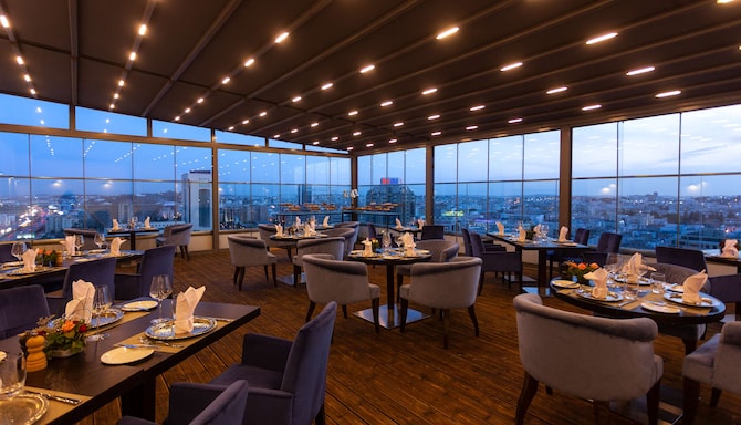 يقع مطعم Blu Roof Atmosphere في الطابق الثالث عشر، ويدعوك للاستمتاع بتجربة طهي أصيلة في أجواء أنيقة. استمتع بالمأكولات اللذيذة المصحوبة بالموسيقى الجميلة الهادئة، بينما تستمتع بالمناظر البانورامية الفريدة لتونس.