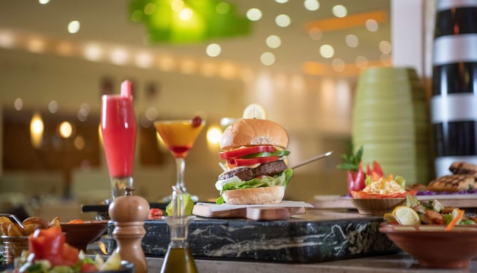 اختر من بين المطاعم والمقاهي الأنيقة في منتجع راديسون بلو، جيزان. نحن نلتزم بمعيارٍ رفيع المستوى في تقديم المأكولات والمشروبات، وعلامة الخدمة "نعم أستطيع!"، لذلك نحرص دائمًا على توفير شيءٍ لذيذٍ في قاعات مطعمنا يرضي شهية كافة الأذواق. استهل يومك بتناول الطعام من بوفيه إفطار مطعم صبيا الرائع، أو انطلق إلى هناك لتستمتع بخيارات قائمة الطعام الانتقائية على الغداء أو العشاء. مقهى Baish ومقهى Le Terrace يفتحان أبوابهما طوال اليوم للاستمتاع بمأكولاتٍ خفيفة ومشروبات.
