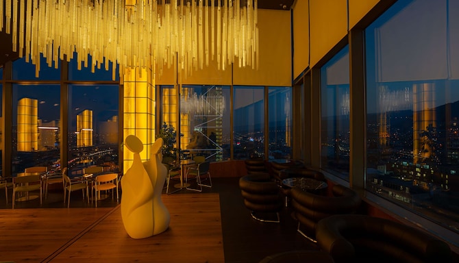 استمتع بتجربة المدينة من آفاق جديدة في بار Oxygen، الواقع في الطابق 18 من فندقنا. مع إطلالات شاملة على أفق تبليسي، يوفر البار المكان المثالي للتجمعات المريحة أو محادثات العمل. للضيوف الذين يستمتعون بالتدخين، نقدم أيضًا مساحة مخصصة تقع في الطابق 17. سواء كنت تبحث عن الاستمتاع بمشروب غير رسمي أو الاحتفال بمناسبة خاصة، فإن بار Oxygen يوفر أجواء أنيقة لا تُنسى.