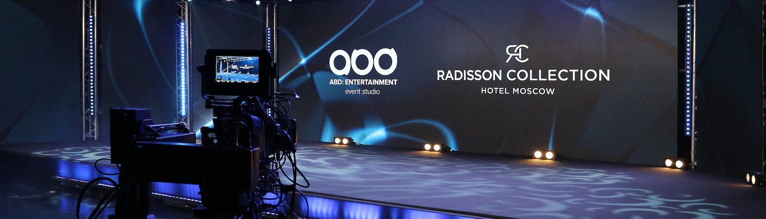 يقع الاستديو الجاهز تمامًا لعقد فعالياتك عبر الإنترنت في قاعة المؤتمرات (والتي تبلغ مساحتها 380 متر مربع) في Radisson Collection Hotel, Moscow.