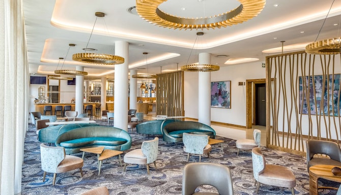 استمتع بممارسة التمارين الرياضية في صالة الألعاب الرياضية المجهزة بالكامل واختتم يومك بمشروب ليلي مريح في الردهة التنفيذية، قبل العودة إلى غرفتك المريحة للاستمتاع بنوم هادئ ليلاً.