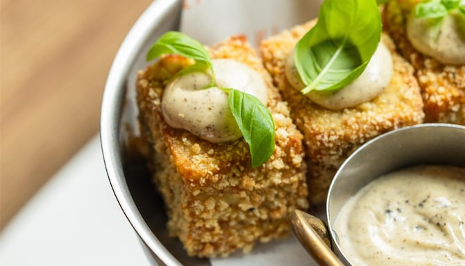 في مطعم فيليني، نستخدم المكونات المحلية الممزوجة بأفضل ما يقدمه المطبخ الإيطالي. استمتع بتشكيلة متنوعة من المقبلات، والبيتزا على الطريقة النابولية، والمعكرونة، والريزوتو الكريمي، واللحوم والأسماك المشوية، بالإضافة إلى الحلويات اللذيذة. قم بإقران النكهات في طبقك مع نيجروني جيد في كوبك واستمتع بالإسبريسو التقليدي أو الجرابا العطرية.