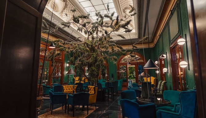 Moc pěkný bar, skvělá atmosféra, ale divní hosté... Atmosféra hotelového baru trochu ubírá energii místu... ale vrchní barman byl opravdu skvělý