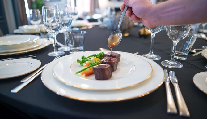 Afhold et eksklusivt event i et af vores unikke lokaler med betagende udsigt over Bryggen, Bergens ikoniske havn. Uanset om du skal afholde en virksomhedsbanket eller en privat fejring er der plads i et af vores nyligt opgraderede lokaler for både små forsamlinger og store middagsselskaber for op til 77 deltagere. Afhold en dåbsfest, fødselsdagsfest, mindehøjtidelighed, bryllup, jubilæum eller virksomhedsevent – vores smagfulde cateringmuligheder, unikke beliggenhed og erfarne personale vil sørge for, at du får et mindeværdigt event.