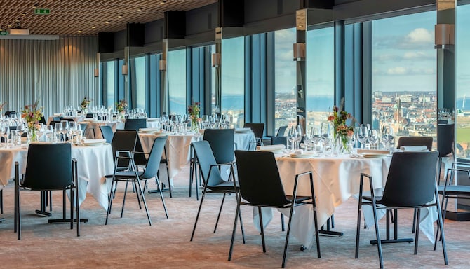 Kombiner dit event med kulinariske oplevelser, som imponerer. Vores kokke tilbyder menuer, som er skræddersyet til din gruppe og altid tilberedt med sæsonbestemte, lokale ingredisenser og med øje for præsentationen. Uanset om du byder dit netværk på drinks med udsigt over byen eller en formel middag med siddende gæster, overvejes hvert element omhyggeligt for at løfte niveauet for dit event. Sæt scenen for inspiration, forbindelser og fejring. Hos The View bliver dine events uforglemmelige.
