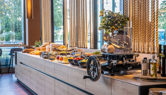 Besøg vores praktisk beliggende restaurant KAI40 i stueetagen og vores KAI40-loungebar i lobbyen. Smag lokale retter inspireret af Rostock-regionen, eller slap af i baren med aperitiffer, vin eller snacks. Vores KAI40 Rooftop Bar på 7. etage serverer lokalt inspirerede drinks nær havnen. Nyd solnedgangen, og slut dagen af med hyggelig loungemusik.