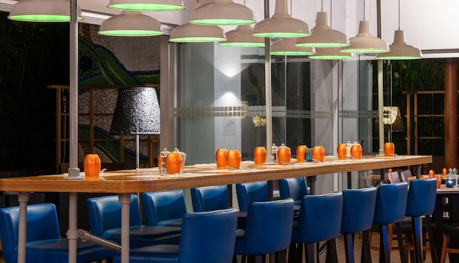 Jeden Morgen wird ein Frühstücksbuffet serviert, und zum Mittag- und Abendessen gibt es eine große Auswahl an À-la-carte-Gerichten. Unsere Gerichte vereinen afrikanische und internationale Einflüsse zu einem reichen Geschmackserlebnis. Die Lobbybar, die an das Restaurant angeschlossen ist, führt zu einer Außenterrasse mit entspannender Aussicht und einem Mauergarten.
