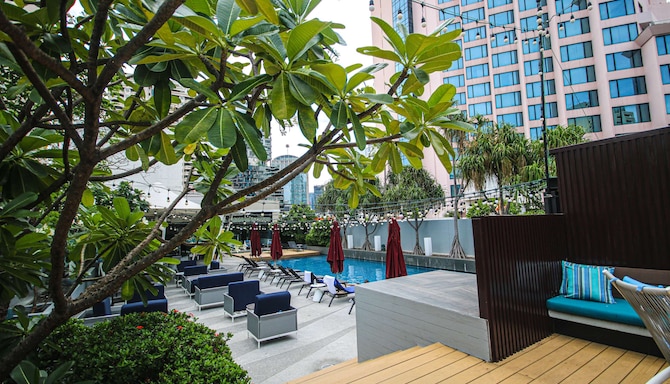 Ganz gleich, ob Sie den ganzen Tag am Pool verbracht haben oder gerade von einem Meeting zurückkommen: Das Sway ist ein ruhiger Rückzugsort, an dem Sie sich entspannen und einen kühlen Drink genießen können.