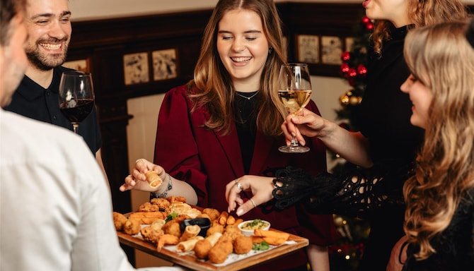 Feiern Sie wie 1922! Wir entführen Sie in die Vergangenheit, in die glamouröse, dekadente Welt des Jazz Age. Hier erwarten Sie Flapper Girls ... und jede Menge Federn. Genießen Sie ein köstliches Drei-Gänge-Menü mit All-inclusive-Getränken und Live-Gesang mit modernen Klassikern, vorgetragen im Stil der 1920er-Jahre.