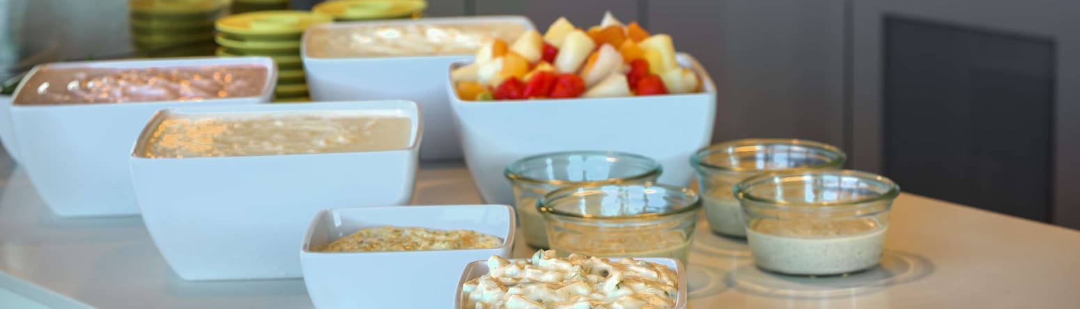 Beginnen Sie Ihren Tag mit unserem reichhaltigen Frühstücksbuffet mit frisch gebackenem Brot, regionalen Spezialitäten, bunten Früchten, Müsli, Joghurt, Käse, Aufschnitt und unbegrenztem Kaffee. Außerdem haben wir für Sie vegane, glutenfreie und laktosefreie Optionen im Angebot!