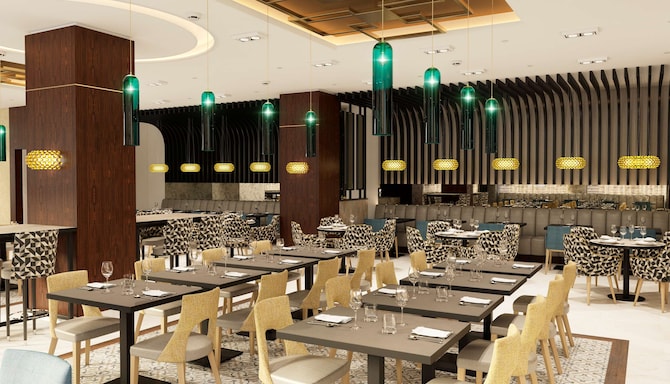 Unser Hotel bietet ein ausgezeichnetes hoteleigenes Restaurant, und ohne einen Besuch hier wäre Ihre Reise nach Budapest nicht komplett. Das Café Zsolnay ist eine symbolische Institution in Ungarn. Hier geht es nicht nur darum, etwas zu essen, sondern vor allem auch darum, tiefer in die Geschichte und die Kultur dieser Stadt einzutauchen. Genießen Sie unser berühmtes hausgemachtes Gebäck oder probieren Sie unser unvergleichliches ganztägiges Frühstück. Da das Frühstück unsere Lieblingsmahlzeit ist, servieren wir zusätzlich in unserem anderen hoteleigenen Restaurant, The Globe, das unverwechselbare Frühstücksbuffet von Radisson. Beachten Sie, dass man dieses Restaurant auch für private Veranstaltungen mieten kann.