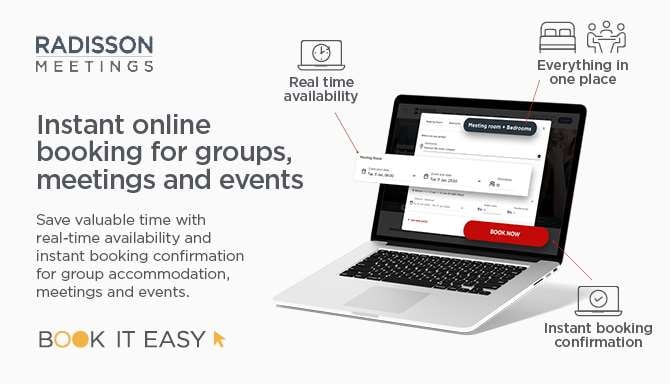 Sparen Sie wertvolle Zeit mit unserer Sofortbuchungsplattform für Meetings, Events und Gruppenunterkünfte. Um für Ihre nächste Gruppe oder Veranstaltung online zu buchen, geben Sie Ihre Daten und die Größe Ihrer Gruppe oder Tagung ein. Mit nur wenigen Klicks können Sie in Echtzeit unsere Verfügbarkeit sowie die besten Gruppentarife und Tagungspakete prüfen. Erkunden Sie unsere Veranstaltungsräume und Schlafzimmer mit virtuellen 360-Grad-Touren, passen Sie Ihr Paket individuell an, bestätigen Sie Ihre Buchung und erhalten Sie sofort eine Bestätigung. Um später Änderungen vorzunehmen, senden Sie uns eine E-Mail an events@radissonhotels.com.