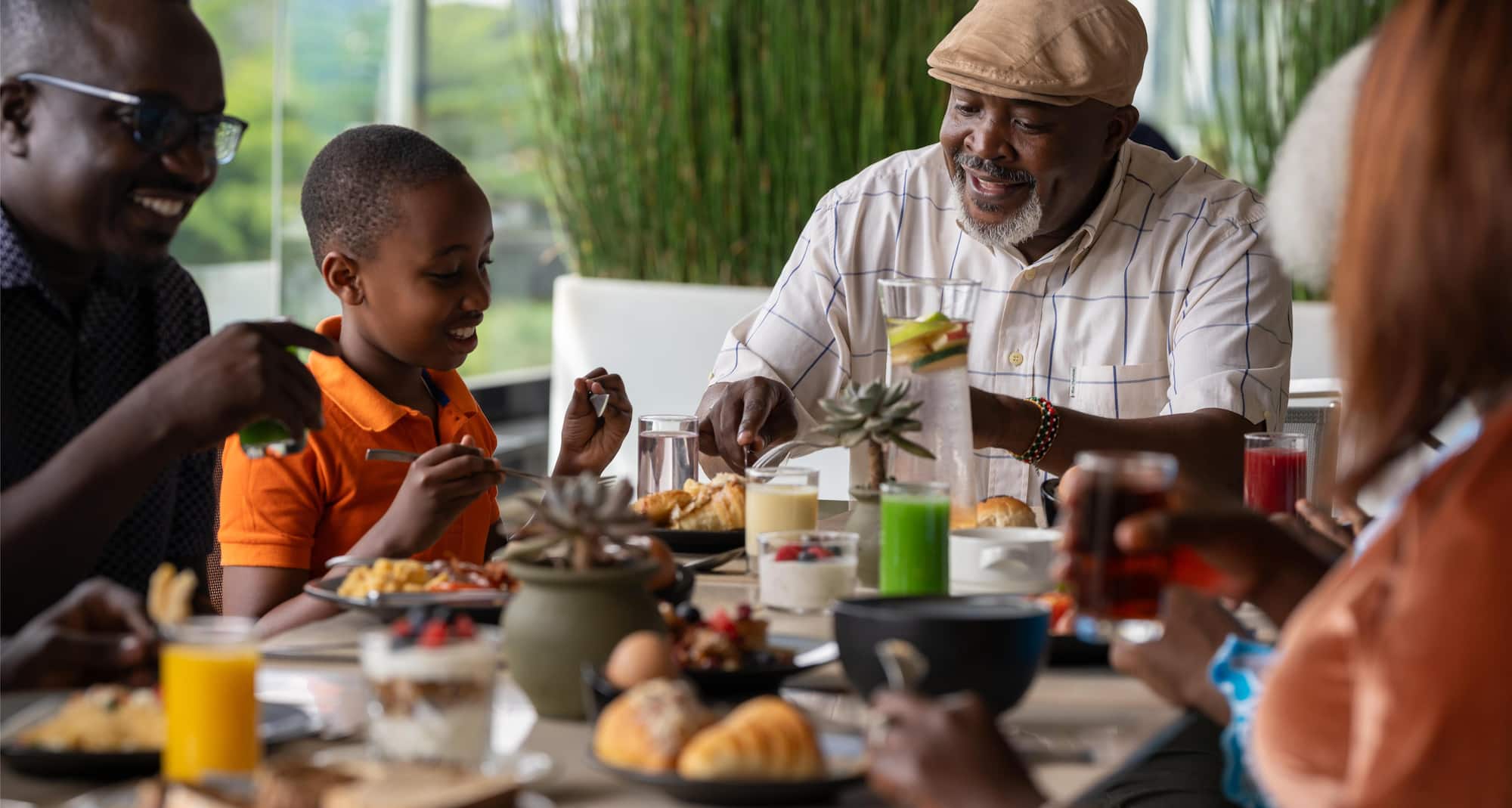 Genießen Sie köstliche Gerichte im durchgehend geöffnete Restaurant und Terrasse Larder