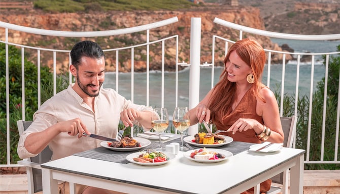 Genießen Sie jeden Abend ein anderes kulinarisches Erlebnis bei einem atemberaubenden Blick auf den Sonnenuntergang.