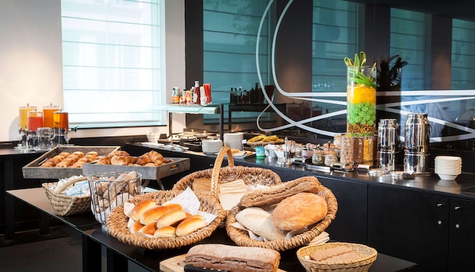 Genießen Sie frische und schmackhafte Gerichte im Radisson Hotel Brussels Centre Midi. Unser Frühstücksbuffet bietet eine Auswahl an gesunden und köstlichen Optionen, darunter kontinentale Klassiker und heiße Getränke. Lehnen Sie sich zurück und entspannen Sie sich bei einem einzigartigen Cocktail und einer Snackplatte in unserer hoteleigenen Bar und genießen Sie die Aussicht von unserer Außenterrasse.