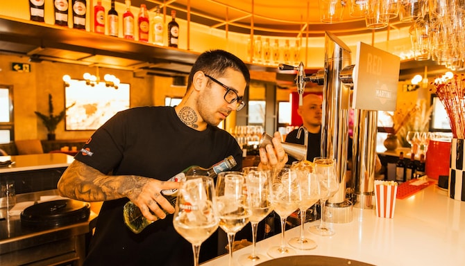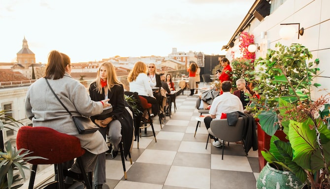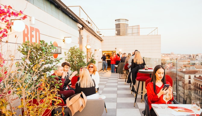 Entdecken Sie eine Kombination aus Musik und Kultur bei erstklassigen Cocktails und einer atemberaubenden Aussicht, wenn das RED by Martini im Radisson RED Madrid seine Türen öffnet. Wenn die Sonne über der pulsierenden spanischen Hauptstadt untergeht, erwacht unser neuer Hotspot auf der Dachterrasse zum Leben und bietet eine lebhafte und elegante Atmosphäre über den Dächern der Stadt.