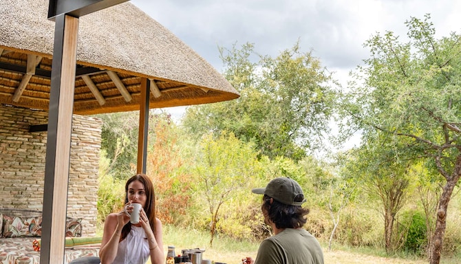 Wachen Sie auf mit Blick auf die Berge oder die Savanne aus komfortablen Zimmern in der Nähe von Hoedspruit