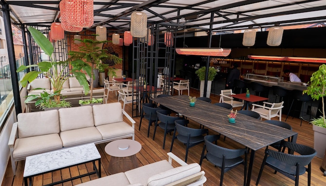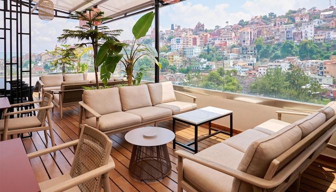 Die SOHO Rooftop Lounge befindet sich auf der 5. Etage und ist ein ruhiger Rückzugsort vom städtischen Trubel im Stadtzentrum. Erleben Sie die majestätische Aussicht auf Tana und gönnen Sie sich frühmorgens einen Kaffee mit Gebäck und nachmittags einen Tee oder erfrischenden Cocktail. Vom Frühstück bis zum À-la-carte-Abendessen ist die Dachterrasse der perfekte Ort zum Entspannen oder zum Genießen wöchentlicher Live-Musik und DJs.