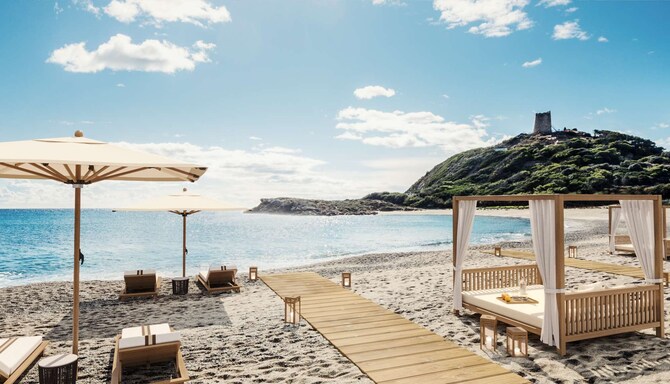 Nestled in lush greenery, Veridia Resort Sardinia, a member of Radisson Individuals offers breathtaking views of the Bay of Chia and the iconic Saracen Tower. The new resort features a collection of six modern residences arranged around the central building, blending seamlessly with the breathtaking landscape. The spacious accommodations epitomize comfort and sophistication, with each room and suite thoughtfully designed to maximize views of the Bay and the Tower of Chia. A mere five-minute stroll through a picturesque, wooded path leads guests to Su Portu, a secluded bay with golden sands, rocky cliffs and lush landscape. This private beach, stretching approximately 250 meters and offers a serene and majestic setting with the historical Tower of Chia as a stunning backdrop.