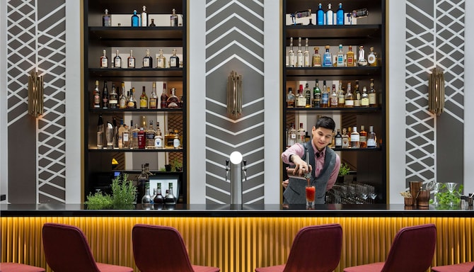 The bar offers a curated selection of classic international drinks, innovative signature cocktails, and a handpicked array of wines from across Europe. The food menu features a tempting variety of light meals, small plates, and bar snacks, inspired by the fresh ingredients and bold flavors of the Mediterranean.
