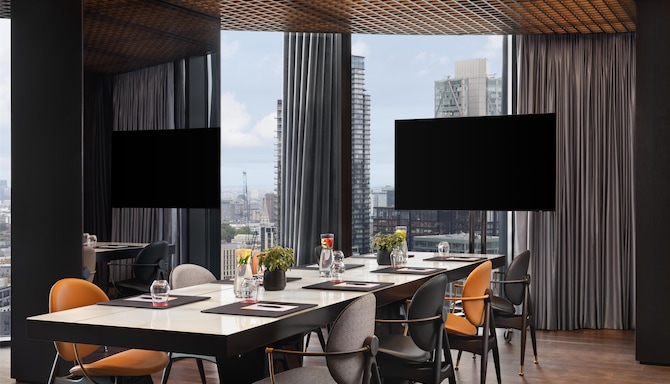 art'otel London Hoxton offers ten flexible Creative Rooms spanning 460 square meters. Located on the 24th Floor, our venue Panorama offers private dining with stunning skyline views of the capital, perfect for corporate meetings, social events, and special occasions for up to 350 guests.