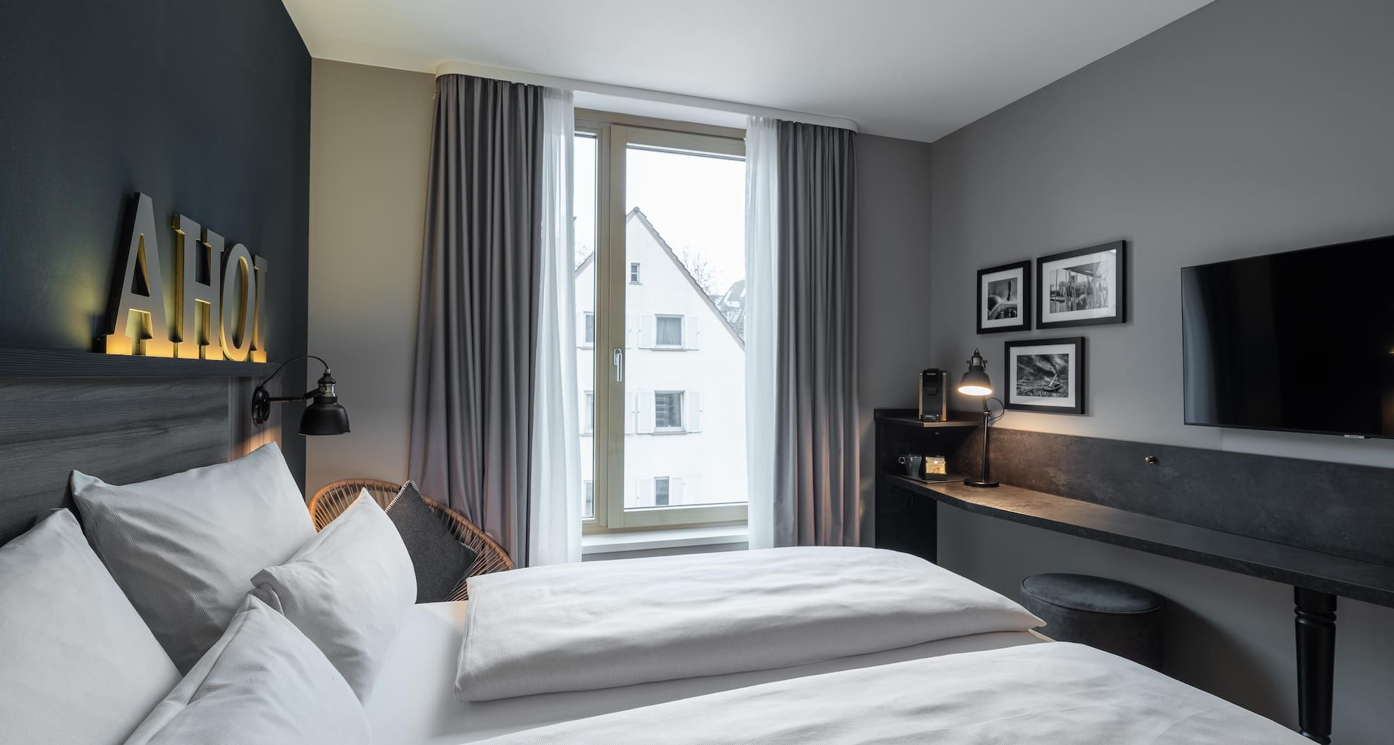 At HARBR. Hotel Ludwigsburg, our rooms and suites offer a cozy, maritime-inspired retreat. Standard Rooms feature queen-size beds, free Wi-Fi, a desk, and a coffee machine in 18 square meters of comfortable space. Superior and Premium Rooms provide extra comfort and flexibility, while our spacious Junior Suites offer stunning city views and family-friendly amenities. Enjoy modern conveniences and a relaxing atmosphere, perfect for business or leisure stays.