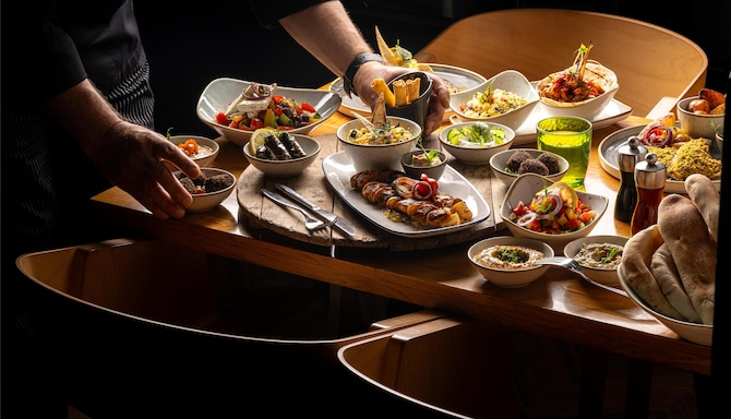 Savor fresh, vibrant dishes inspired by Mediterranean cuisine in a warm and contemporary setting. To wrap up the meal, make sure you try our homemade desserts. At Sharkia, the menu includes international and Mediterranean dishes for lunch and dinner. For breakfast, try a selection of international products as well as fresh fruit, fresh bread, and a variety of hot and cold dishes.