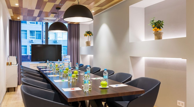 There are 6 flexible and stylish boardrooms with an access to a bright pre-function area located on the 2nd floor.The latest audio-visual equipment and the assistance of a dedicated Meetings & Events staff ensure your event will run smoothly from start to finish. A panoramic conference space on the 18th floor with a fabulous view on the city presents 5 contemporary conference rooms and an elegant pre-function area that can all together up 250 people for a cocktail or a coffee break. Ample opportunities of the new venue on the 20th floor are ideal for banquets, cocktails and other extravagant social events.
