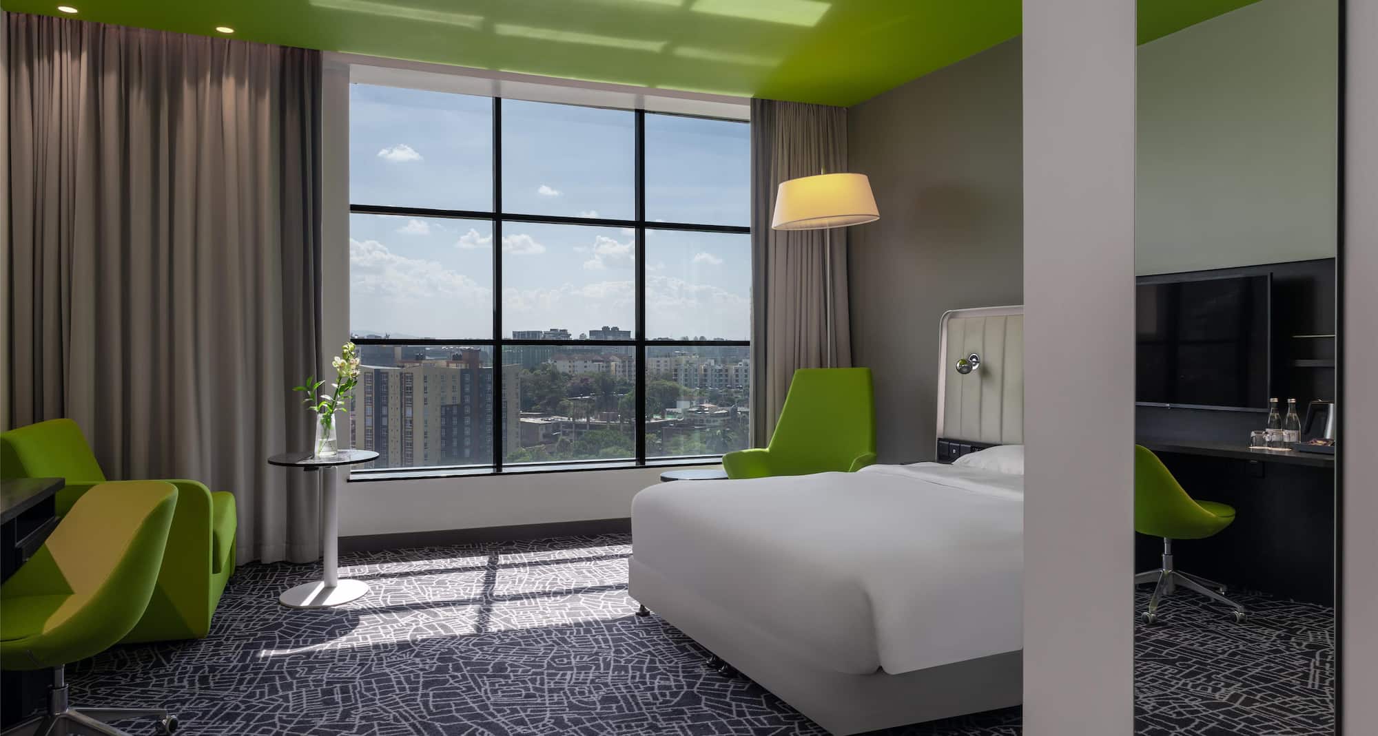 Enjoy stylish accommodation in Nairobi in one of our 140 colorful rooms with trendy décor. Thanks to the hotel's double-glazed windows and comfortable bedding, you'll sleep soundly whether you are on the 1st or 10th floor. Enjoy refreshing amenities like a minibar (on request), bottled water, chrome cast with easy access to streaming, and coffee and tea supplies.