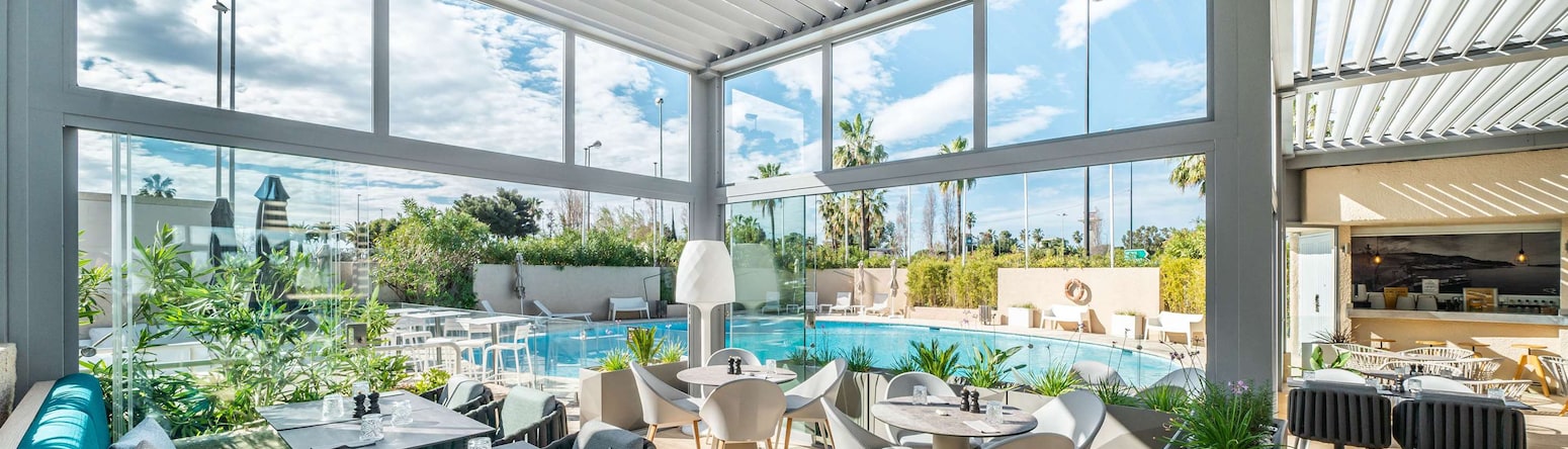 Unwind in one of our 151 large, modern rooms. Discover local flavors at our restaurant, l'Azur Bistrot Niçois, or enjoy refreshing drinks at our bar. For a relaxing summer experience, spend the day lounging by our shimmering pool. Are you planning an event in Nice? Book one of our six meeting rooms, our expert event planning team will help make your special occasion a total success.
