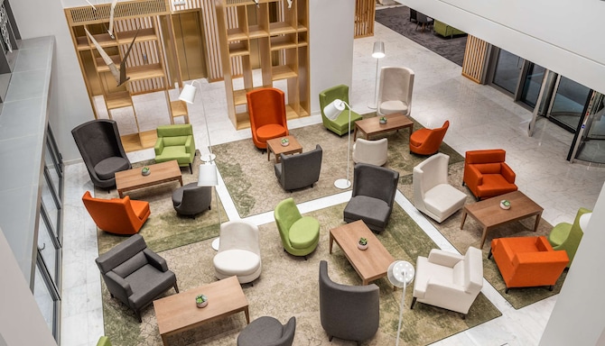 With four on-site restaurants and bars, there’s no reason to go hungry or thirsty at the Park Inn by Radisson Riyadh. Enjoyed grilled meats and vegetables at the RBG Grill, the host of our daily breakfast buffet, which also serves hot and cold drinks. Our Pairidaéza restaurant serves delicious Levantine and Middle Eastern dishes and has a lovely outdoor terrace to enjoy sunny days on. Find a tasty tipple in our two bars, the waterside Pool Bar and our relaxed Live Inn Lobby Lounge.