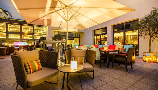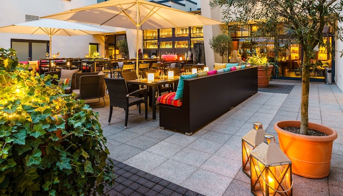 Our charming Mediterranean courtyard is a hidden gem, offering a peaceful oasis to relax and indulge. Surrounded by fragrant plants, warm colors, and an inviting atmosphere, it’s the ideal spot to enjoy delicious moments from morning to night. Start your day with a leisurely breakfast in the sunshine, stop by in the afternoon for a coffee, or unwind in the evening with a refreshing drink or a glass of wine. Whether you're in the mood for a light snack or a romantic dinner under the stars, our courtyard offers the ideal setting for unforgettable, open-air dining with Mediterranean flair.