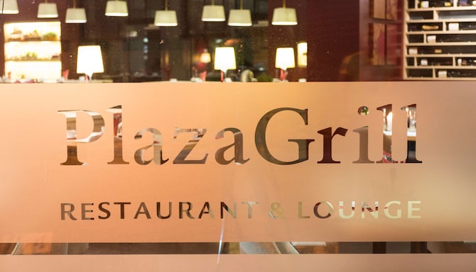Enjoy a relaxed atmosphere with regional and international grill specialties, refined vegetarian dishes, and fresh fish at Plaza Grill. We offer seating for 120 indoors, 100 in our Mediterranean courtyard, and a cozy lounge bar with 50 seats.