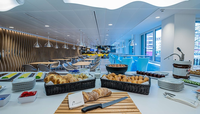 With 188 rooms, the hotel brings playful modernity to Bern’s historic backdrop. Each room includes a king-size bed, rainforest shower, underfloor heating, soundproof windows, and free Wi-Fi—all the comforts you need after a day of exploring. Fuel your adventures with our hearty breakfast buffet, from fresh breads and fruits to cheeses and warm dishes, and relax at our 24/7 bar when the day winds down. Add in easy digital payments, flexible housekeeping, pet-friendly stays, and nearby parking, and your trip couldn’t be simpler.