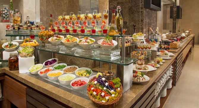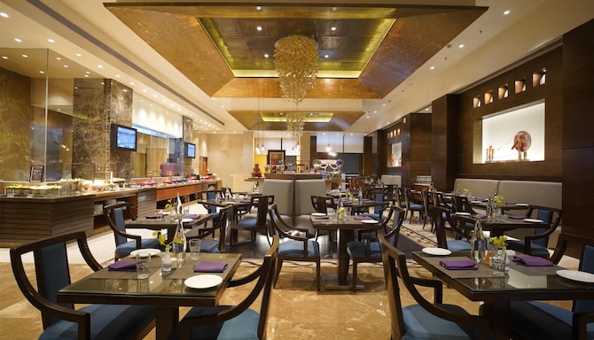 At the Radisson Blu Hotel Ahmedabad, you don’t have to leave the hotel to enjoy an outstanding meal. You can satisfy your cravings for comfort food that reminds you of home or dive into the flavors of the region. We offer delicious options in sleek, contemporary dining rooms at both Timpani, our 24-hour restaurant and coffee shop, and The Great Kabab Factory. Stop by Timpani for breakfast, lunch, and dinner buffets with Thai, Indian, Chinese, and Italian dishes, or order à la carte from an extensive menu. You can also choose from a mouthwatering assortment of impressive vegetarian and non-vegetarian options at The Great Kabab Factory.