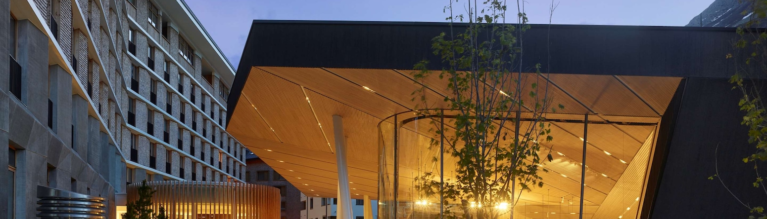 The Concert Hall is an architectural masterpiece by Studio Seilern Architects, dominated by a clean design in warm Alpine wood with 8-meter-high windows overlooking the mystic mountains. In addition to the flexible floor space, state-of-the-art solutions in terms of lighting, communication, and audiovisual equipment are built into the facility. For an unforgettable sound experience, Kahle Acoustics and dUCKS scéno—the same teams that have been responsible for the sound engineering of the Philharmonie de Paris—designed the high performance sound system with an ultra-modern Amadeus system, making reverberation possible.