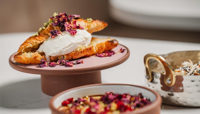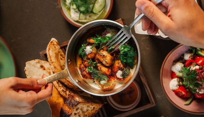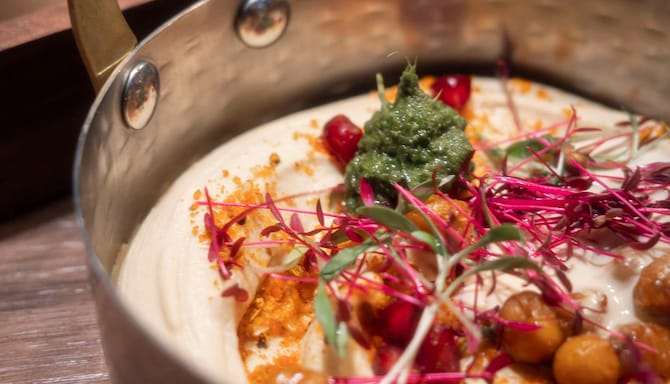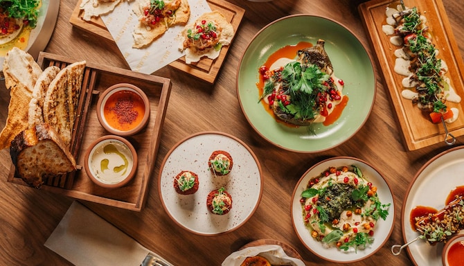 Socialize with friends and family while indulging in modern Middle Eastern sharing plates and innovative cocktails in a vibrant atmosphere.