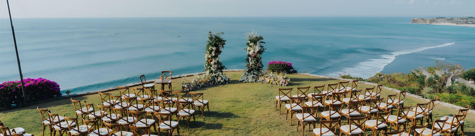 Celebrate your love in the romantic charm of Uluwatu with a selection of stunning ocean-view wedding venues. Say “I do” surrounded by the Indian Ocean, step onto a floating stage for your first dance, and toast under the stars.