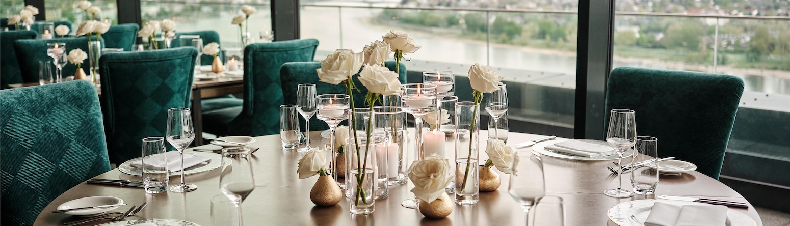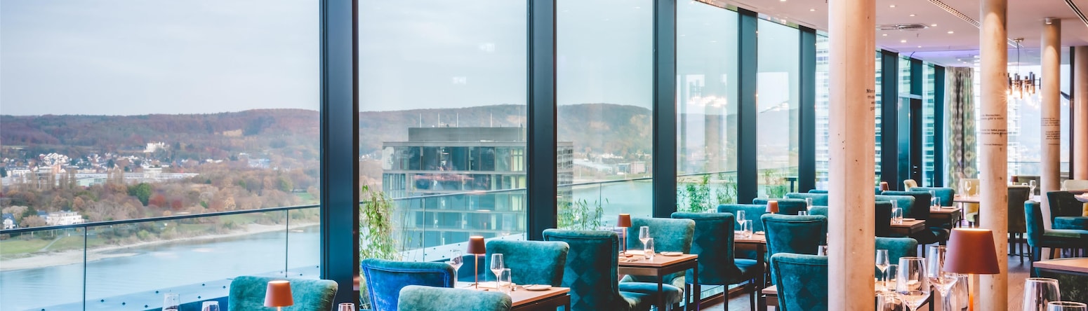 For dinner, visit Konrad’s Restaurant & Skybar on the hotel’s 17th floor, offering à la carte dishes and set menus, complemented by breathtaking views over Bonn and the Rhine River.