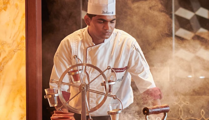 Introducing Kari Theory, the first of its kind in Chennai city. Discover a delicious selection of dishes inspired by South Indian street food crafted by our chefs using traditional, authentic methods. Sample dishes full of flavor and flair, infused with the flavors of blow torch searing, wood smoking, stir-frying, and slow cooking. Order plates to share or full-size portions, and for true foodies—try our tasting menus. Unwind in a relaxing atmosphere overlooking the swimming pool and choose a seat al fresco on the terrace or indoors. Pair your dishes with a variety of liquors and wines and enjoy the musical selection from your table.