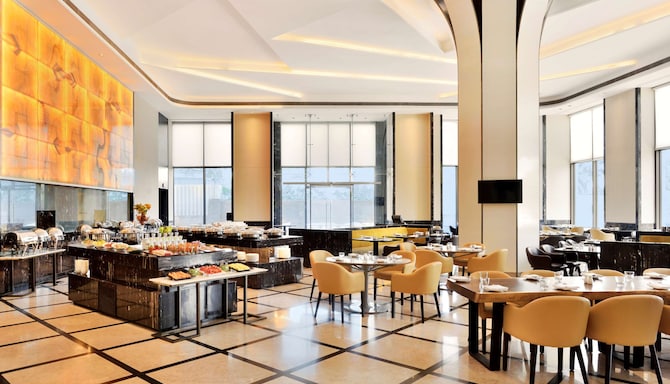 From international favorites to local Indian dishes, each restaurant at the Radisson Blu Hotel Coimbatore serves a variety of tempting options. Enjoy all-day dining at Seasons, which offers buffet-style meals and a variety of à la carte dishes, so you can grab a quick bite before catching an early flight at Coimbatore International Airport. The Great Kabab Factory, our hotel’s signature restaurant, offers a wide assortment of kababs and Indian favorites like biryani and dal. End the evening with a sweet treat from The Cake Shop & Tea Lounge, which offers an array of freshly baked pastries and freshly brewed teas.