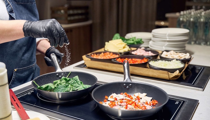 Our Super Breakfast includes live cooking stations, vegetarian and vegan options, as well as a large variety of international options.