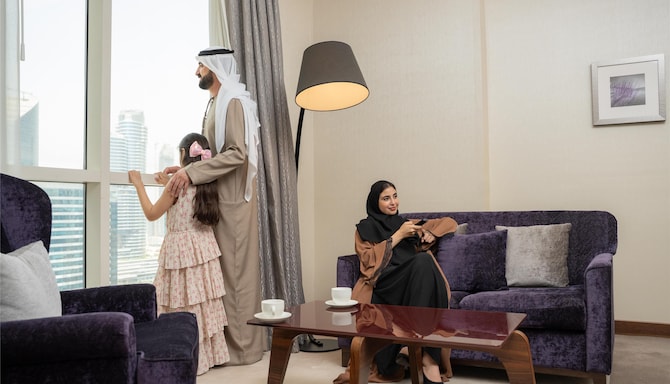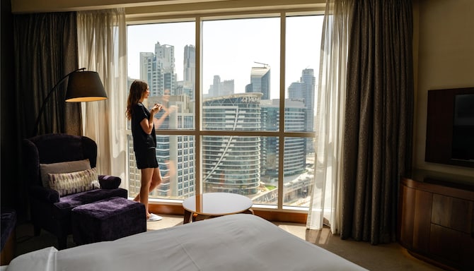Enjoy spectacular views and high-end amenities from the comfort of your room after a full day of business or exploration. Each of the 432 rooms and suites are stylishly designed, with a calm and relaxing atmosphere and high-end finishes, capturing views of the Business Bay district in downtown Dubai. Many of the rooms include private balconies offering an outdoor area to soak up the breathtaking skyline. Guests staying in our Business Class room can enjoy complimentary access to our Business Lounge.