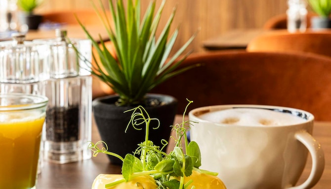 Kickstart your day with our hearty breakfast buffet, offering a range of local and continental classics as well as hot beverages. Discover our on-site restaurant and enjoy a selection of British brasserie-style dishes in a cozy and comfortable atmosphere. Sit back and relax with friends or colleagues and try our fine selection of refreshing beverages.